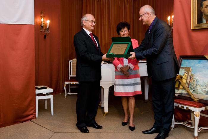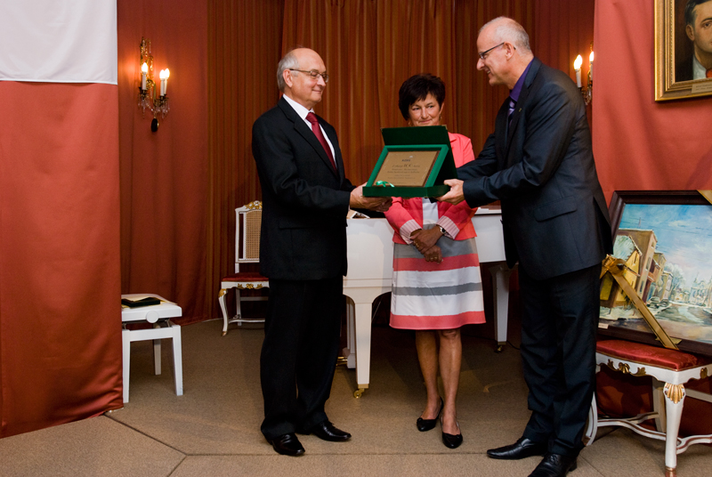Prezes Banku, dr Krzysztof Sadurski oraz Jolanta Głuch wiceprezes zarządu pełnili honory gospodarzy, a także odbierali z rąk gości wyróżnienia i prezenty.